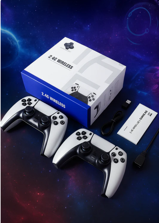 Bez kabli, bez ustawień, bez stresu. Dwa pady bezprzewodowe 2.4GHz dają pełna swobodę, możesz grać z kanapy, łóżka czy dowolnego miejsca w twoim domu!